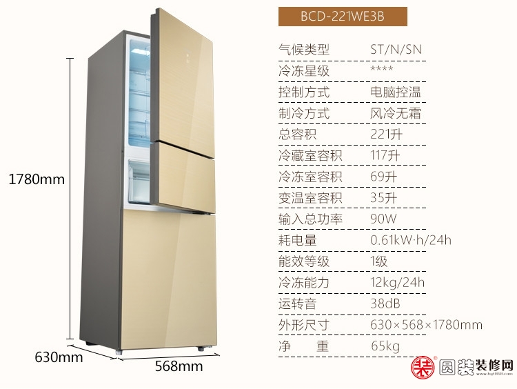 BCD-579WE 579容升定频风冷对开门冰箱 金色(水韵纹)1级能效